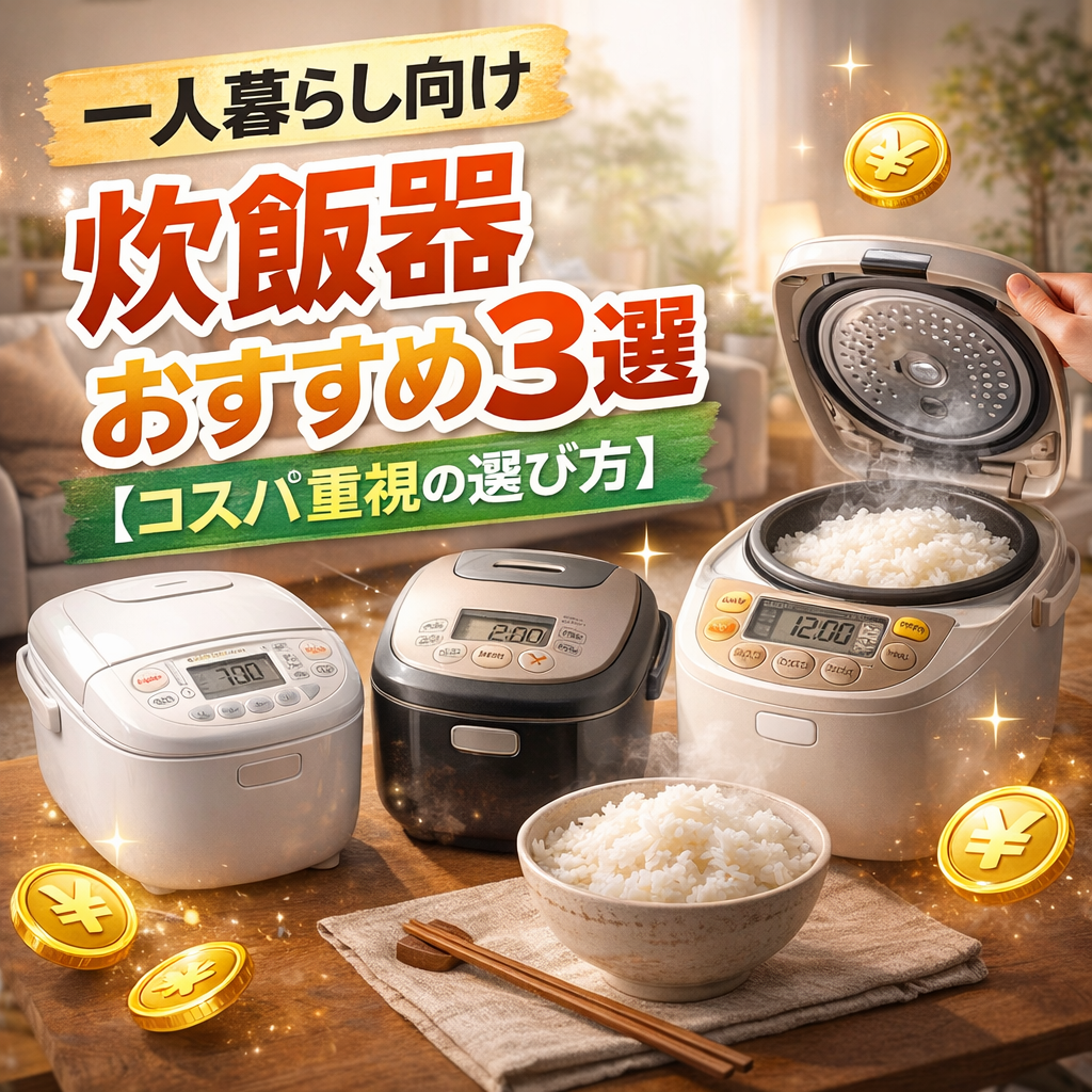 一人暮らしを始めるときに迷いやすい家電のひとつが炊飯器です。種類やサイズが多く、どれを選べばいいのかわからない人も多いと思います。 適当に選ぶと「大きすぎた」「使いにくい」と感じる原因になります。この記事では、一人暮らしに最適な炊飯器の選...
